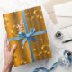 En elegant och en underbar guldfärgad julomslutning papper med en snyggt mönster av guld-snurrar och -klämmor, guldsnöflingor, guld-stjärnor och små tvillingvita stjärnor, allt på en vacker metallisk bakgrund i guld för att ge din presentomslutning en snyggt.