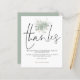 Skriptet Bröllop Sage Foliage Guld Tack för ett prist budgetalternativ på 4,5 tum x 5,6 tum. Finns i ett SEMI-GLOSS 110 lb-kort LAGRAR, vilket är standardalternativet (tjockare för inbjudningar), ELLER SATIN AVSLUTAR 80 lb PAPPER LAGRAR (perfekt för bilagor). Kuvert är ett extra som tillval och är något större än det storleka kortet. Den här eleganten har en vattenfärgsfoliemotiv i sidans grönt och guld överst med ett snyggt-angivet skript för sidhuvudet. En koordinerande sidbakgrund är på baksidan. Resten av texten kan lätt bli personlig till ord.