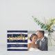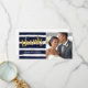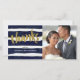 Med det här glam-kortet får du tillgång till faux-guld-folie, handskrivet penselskriptkalligrafi, målat marint blått vattenfärgsfärgat rand och en fyrkantig fotomall.