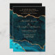 Elegant Guld Glitter och Teal Agate bröllopsinbjudan med formellt värd av parets föräldrar.