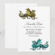 Perfekten för att tillkännage en elegant fantasybordsspel med temat bröllop är den här magnifika och unika draken Spara datuminbjudan med en sjudande färgad guld drake och turkosdrake. Enkel att anpassa, lägg bara till din bröllop-information i den text fält tillhandahåller. Klicka på Anpassa om du vill söka efter fler anpassningsalternativ.
