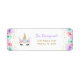 Unicorn First Return-adressetikett Utformningen av kutéer i faux glitter guld med blommigt accent. Lila, teal, rosa guld och vitt. Perfekt för en magisk dag firande.