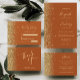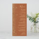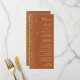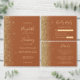 Den moderna bröllop-menyn på den lämnat kant i eleganten har en guld faux glitter-design. Anpassadet kombinerar handskrift, rityta och kursivt typsnitt med guld-färgad på en terracotta-bakgrund. Baksidan har en liknande terracotta- och guld glitter-design.
