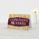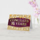 Det här är ett årskort för anställda med 35e av 3D-effekten guld färgad som lyder: GRATULERARA 35 år. färg-designprogrammet är vitt, guld och plommon/burgundy. Ovanför texten finns illustrationer av guld-ballonger, guld och vit buntning och konetti mot en vit bakgrund. Under texten finns mer guld och vit buntning och konfekti ställs in mot guld färgadens bakgrund. Själva texten ställs in mot en plommonbakgrund för färgaden. Konstruktionen har en livlig, berömmande känsla. Kortdesign av Natalie Kinnear