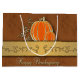 Ett värdefullt exempel på Thanksgiving från guldhösten: guld och diamanter lämnar med dekorativa guldpumpor och ett lyxornament gräns på en elegant bruna grunge-bakgrund.