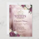 Guld tiara, burgundblommor och guld konetti med ro guld som bakgrund Söt 16 födelsedagsfest inbjudan.