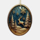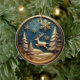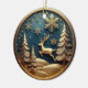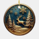 Denna runda keramiska rendekoration har en elegant guld färgad ram som omger en guld-festlig utformning. Bakgrunden visar en serene julsnowy nattscen, med ett mörk blått himmel fyllt med snöflingor. Under vintern i snö med träd lyfts ett bildligt landskap med mjukt upp av glöden från måne. Guld hjort med ett skickligt flygande antenner tillför ornamenten en aning magi och helgdag i Julafton. Samma bild finns på framsidan och baksidan. Detta garanterar att oavsett hur prydnadsfärgen går, så ser det alltid positivt och fullständigt ut. 🦌 🎄