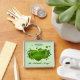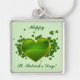 Guld-Trimmad Grönt Heart med Shamrocks Fyrkantig Silverfärgad Nyckelring