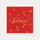 Tryckt guldfärgningseffekt Tro Helgdag Pappra blöjor med röd bakgrund. Elke Clarke© Beautistiskt, enkelt, contemporary-helgdag med ord "Tro" i klassisk handstil guld typografi med en söt konetti guld star mönster som omger texten. Perfekt för en jul Party och Nyårsafton Party. Tryckt fotoeffekt av guld folie. Andra färg och stilar finns tillgängliga i vår butik på www.zazzle.com/monogramgallery.