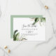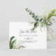 Det tropiska vågrät bröllop spara datum i guld är perfekt för ett modernt bröllop. Konstruktionen har handmålade vattenfärger guld och grönt handflatan och banans löv med rosa blommor som är väl placerade i vackra buketter.