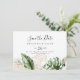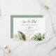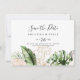 Vågrät för den tropiska blommigten i guld är bröllop spara datum en perfekt för ett nordligt bröllop. Konstruktionen har handmålad vattenfärg guld och tropisk grönt med blommor av elegant.