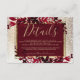 En modern, chic och elegant gul guld typografi Blomster röd burgunderfärgad jul vinter detaljer bröllop med handmålad röd akvarell blad lövverk på en elegant guld bakgrund med vit snö och snöflingor.