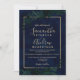 Guld typografi Blommigt marinblått löv bröllop Inbjudningar