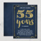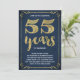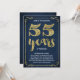 Denna svindyra, stilfulla inbjudan till 55-års bröllopsjubileum har vintage-typografi, eleganta utsmyckningar, penselskrift kalligrafi, falsk guld folie och en chic marinblå bakgrund.