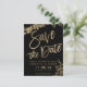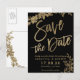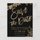 Guld-typografi löv-blommigten, svart inbjudan till bröllop spara datum-bröllopsinbjudan till chic. Skicka datumkortet med den här eleganten faux guld-typografin med löv blad mot svart bakgrund, perfekt för chic stil bröllop