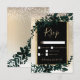 En modern, chic och elegant gult guld typografi Blommigt jul vintern osa bröllop med handmålad grönt vattenfärgsblad i grönt på löv elegant med vit guld och snö.