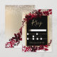 En modern, chic och elegant gult guld typografi Blommigt grönt jul vintern osa bröllop med handmålad röd burgundfärgad löv blad med elegant på guld snö med vitt snöflingor och.