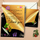 Fira kärlek och vänskap med detta vackert designade tackkort med ett skalat gyllene V-spets framformat som faller graciöst mot det nedre hörnet med en elegant svart förbindelse. Vid föreningspunkten vilar två ömtåliga fjärilar i grönt och gult på en livfull röd ros, som symboliserar harmoni och förnyelse. Ramhörnen är mjukt prydda med subtila blommotiv i lila, vitt och kräm, vilket ger en förfinad touch. Perfekt för att uttrycka tacksamhet till vänner och nära och kära för deras stöd under en bröllopsjubileumsfirande.