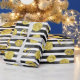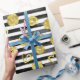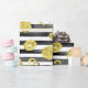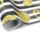 uppvisar en slående kombination av svart och vitt vågrät rand med guld ro, guld läppstift kyssmarkeringar och guld hjärtformer. Kontrasten mellan det djärva rand och det pulserande guld inslag skapar ett synligt fängslande och romantiskt tema.