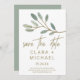 Den här guld-veade eukalypturen sparar datumkortet är perfekt för elegant bröllop. Den enkla och nyanserade utformningen av guld är att glitter lägger beslag på grenar i oliv grönt löv. Obs! Den här designen har inte guld glitter. Det är en grafik av hög kvalitet som framställs som guld shimmer.