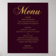 Guld vigsel middagsmeny. Burgundy elegant enkel Poster