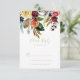 Denna OSA kort av den tropiska blommigten i vilden i guld är perfekt för ett modernt bröllop. Utformningen har handmålade bruna fjädrar, boho-gult, vit, lila, rosa, , burgundblommor och blåbär som är snyggt placerade i vackra buketter.