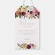 Dessa märkre för välkomna gåvor från den tropiska bröllop-vilden i guld är perfekt för ett nordligt bröllop. Utformningen har handmålade bruna fjädrar, boho-gult, vit, lila, rosa, , burgundblommor och blåbär som är snyggt placerade i vackra buketter. Dessa märkre är perfekt för hotellgästväskor och destinationsbröllop.