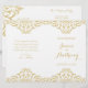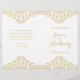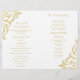 I elegant har vintage bröllop-programmet en känslig förskönande guld-damm på vit bakgrund. Perfekt för vintage glam eller konsthändelse av temat bröllop. Detta storlek är avsett att vikas ihop som en häfte. Papper komar inte med perforation.
