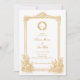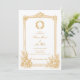 Sätt en kunglig och tidlös ton för ditt bröllop med denna eleganta guld vintage utsmyckade gränsen bröllopsinbjudan, med en lyxig metallisk guld finish, invecklad dekorativ ram, känsliga blommiga accenter i hörnen och ett anpassat monogram i mitten. Denna sofistikerade design blandar klassisk bröllopps elegans med en touch av fransk landsbygd charm, vilket gör den till den perfekta introduktionen till din speciella dag.