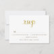 Detta vackra guldfärgade och vita svarskort är perfekt för gyllene jubileer. RSVP-kortet har guldfärgad kalligrafi som lyder "rsvp" och redigerbar text nedan.