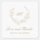 Elegant bröllop föredrar klistermärken som har en ren och tidlös utformning med ditt monogram inuti en vapensköld för utandning tillsammans med meddelandet "kärlek och tack" och ditt namn.