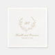 Napkins från elegant bröllop med en ren och tidlös utformning med ditt monogram inuti en vapensköld för krans tillsammans med datum för namn och bröllop.