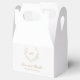 Elegant bröllop föredrar lådor med en ren och tidlös utformning med ditt monogram inuti en vapensköld för utandning tillsammans med meddelandet "kärlek och tack" och namn.