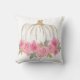 Vattenfärgspumpor med rosa blommigtar och guld dekorerar denna vackra kudde.