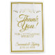 Den vackra bröllop-tackväskan är perfekt för att du tackar ledamöterna i din bröllopsfest eller andra speciella gäster. Designat att samordna med vår guldfärja Elegant bröllop Suite, har den en guld-faux-folie som blomstrar med texten guld gräns och guld som lyder "Tack för att du firar med oss" och parets namn och bröllop datum. Perfekt för att fylla med tackord, gåvor, godis eller andra bröllop-svag.