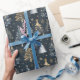 Guld & White Julgranar på svart bakgrund Presentpapper