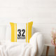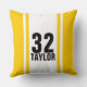 Enkelt och klassiskt Guld & White Stripe-Monogram och numrerad sport Jersey Dekorativ kudde. Underbar för racerspelare, basketspelare, baskiska spelare, hockeyspelare, fotbollsspelare eller någon annan idrottsman. Anpassa med ditt nummer och namn eller din favoritsportspelares namn och nummer.