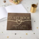Enkelt, lyxigt, minimalt bröllop gäst bok med elegant guld-rep och modernt kalligrafiskript.
