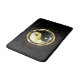 Sjudisk, guld och svart jangassymbol på svart bakgrund. Guld yin yang.