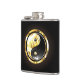 Sjudisk, guld och svart jangassymbol på svart bakgrund. Guld yin yang.