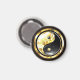 Sjudisk, guld och svart jangassymbol på svart bakgrund. Guld yin yang.