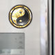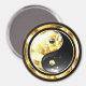 Sjudisk, guld och svart jangassymbol på svart bakgrund. Guld yin yang.