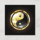 Sjudisk, guld och svart jangassymbol på svart bakgrund. Guld yin yang.