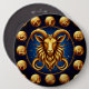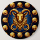 Intrikat guldfärgad illustration av zodiakens tecken Stenbocken omgiven av stjärnor, månar och solar, renderad i en dekorativ himlakroppstil. Perfekt för astrologi-, horoskop- och himlakropps-tema design element.