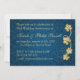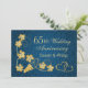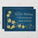 Guldfärgade vinlöv och sammanfogade hjärtan mot en blå damastbakgrund 65-års bröllopsdag inbjudan