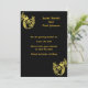 Elegant design med gulda duvor på svart bröllopsinbjudan. Fyll i din information i mallen. Du kan anpassa denna inbjudan med valfri text och typsnitt. Besök Smilin' Eyes Treasures för att se mer blomm- och naturfotografering och digital konst bröllopskort och presenter.