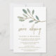 Detta mottagningskort för elopemang med guldådrad eukalyptus är perfekt för en elegant fest efter elopemang. Den enkla och utsökta designen har falskt guldglitter som läggs till grenarna av olivgröna blad. RSVP-kort säljs separat.