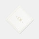 Enkla vita bröllopsservetter med parets initialer i elegant och modern guldbrun teckensnitt inuti en elegant guldbrun fyrkantig ram. Lätt och mångsidig att kombinera med resten av artiklarna i denna bröllopssamling.
