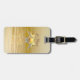 Bagagetagg med min ursprungliga utformning av två delfiner och ett gyllene hjärta på vatten. Texten säger "50 år".