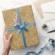 Lägg till en glansig beröring under Julgran med den här anpassningsbarna guld-incheckade mönster-inslagningen papper. Gåvspån har en bakgrund av kontrollerad faux guld foil och faux golden glitter. Det finns även områden för en valfri monogrammad familjs efternamn eller annan text. Gör en underbar personlig till en julklapp eller annan helgdag!